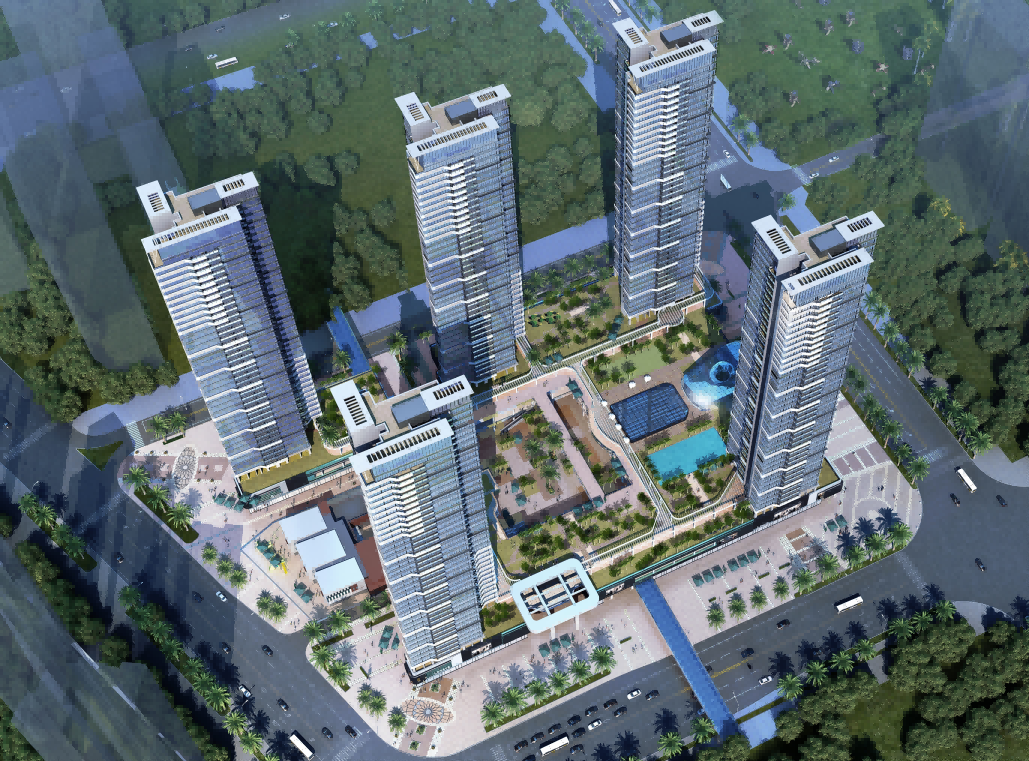 总建筑面积204412.84㎡,由一栋五座塔楼住宅、两层裙楼及三层幼儿园组成,其中住宅面积约88421㎡,商业面积16333㎡,幼儿园面积2200㎡。