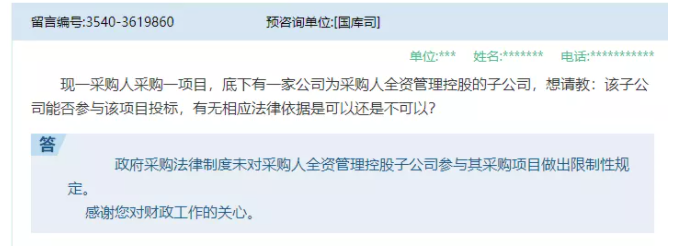 答:政府采购法律制度未对采购人全资管理控股子公司参与其采购项目做出限制性规定。(答复单位:财政部国库司)