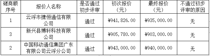 1.中标(成交)供应商名称:中国移动通信集团广东有限公司云浮分公司