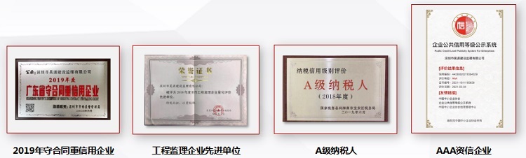 2021年6月1日,深圳市市场监督管理局对2020年度“广东省守合同重信用”企业进行公示深圳监理公司昊源监理顺利通过深圳市市场监督管理局的评审,被授予“广东省守合同重信用企业”荣誉称号。此称号是工商部门对企业合同信用高级别的评价,具有良好的社会效应。